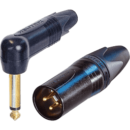 Microphones and preamps typically utilize XLR to XLR cables. This 3-pin connector is balanced and offers quality audio signals even at great lengths. Phone or TRS cables are most recognizable by their long shafts. The shaft will typically have either 1 or 2 black rings, 2 rings for balanced or stereo signals and 1 ring for unbalanced or mono signals. Some equipment even has combo jacks which accept either XLR or 1/4" TRS connections in the same jack. RCA cables are typically split at either end with a separate cord for right and left audio signals. RCA is an unbalanced connection.