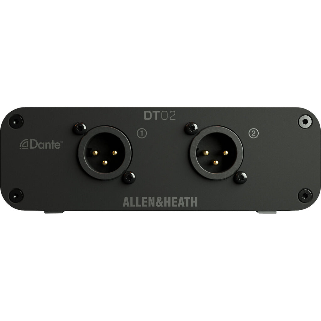 DT02 is a cost-effective, compact 48kHz/96kHz Dante interface enabling 2x XLR outputs wherever you need them on your Dante network. Ideal for a wide variety of fixed installation and AV hire / portable applications, DT02 can be used with any Dante-equipped Allen & Heath mixer or AHM system, as well as with third party Dante systems.