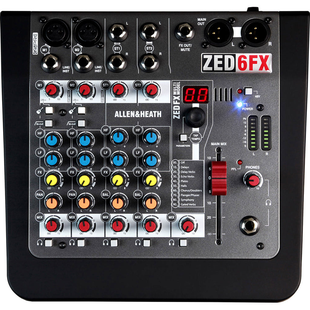 ZED-6FX delivers Allen & Heath's renowned build and audio excellence in a compact, portable format, making it the ideal choice for quality conscious musicians, singer / songwriters and venues. Whether it's bouncing ideas around at home, performing live or recording tracks to share on YouTube and Soundcloud, ZED-6FX is a versatile companion for every step of the creative journey. Featuring the new GSPre boutique preamp design, developed from the revered GS-R24 studio recording console, the ZED boasts exceptionally low noise and massive headroom, with a signature analogue warmth and depth. ZED-6FX is the first mixer to include a specially created suite of studio quality reverbs, delays and special multi-model FX, crafted by Allen & Heath's acclaimed in-house effects aficionados. Guitarists will be pleased to know that ZED-6FX comes with a pair of Guitar DI high impedance inputs, allowing guitars to be plugged straight into the mixer without the hassle and expense of carrying separate DI boxes.