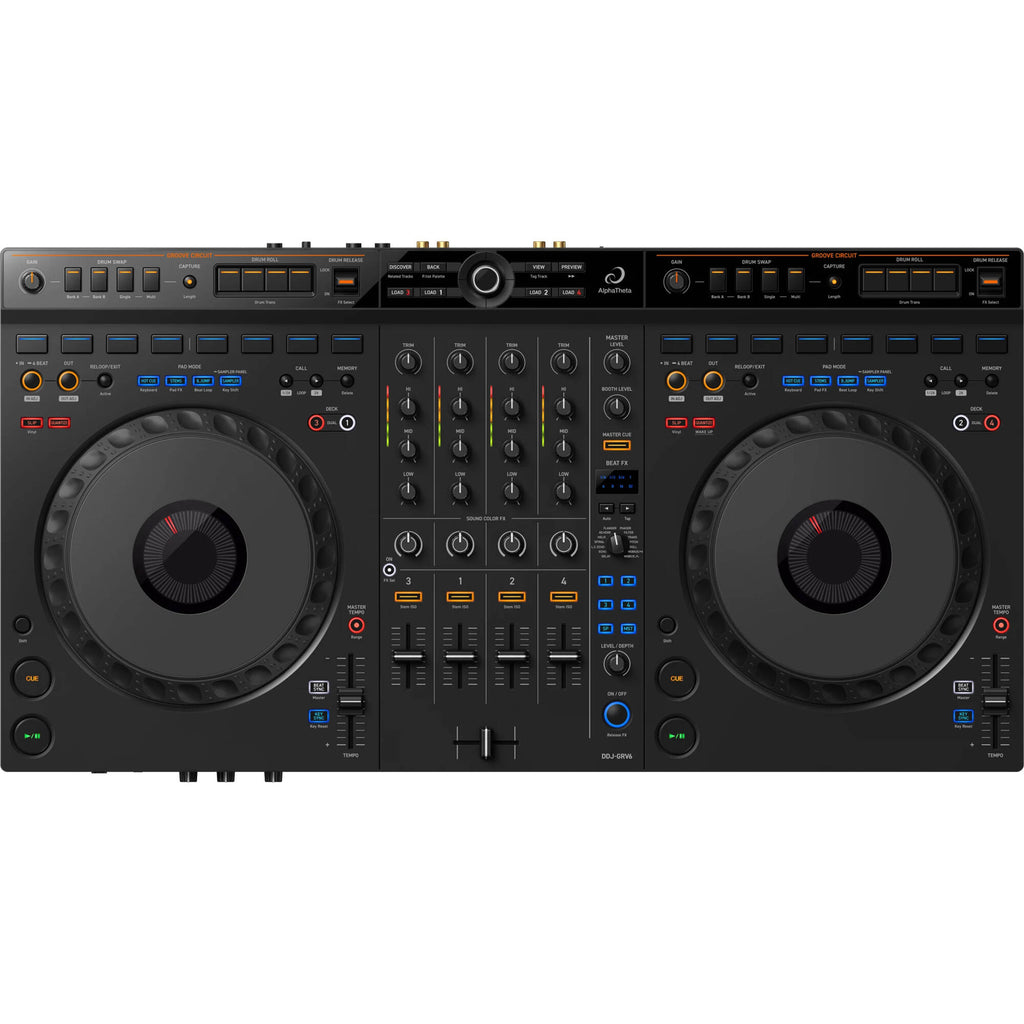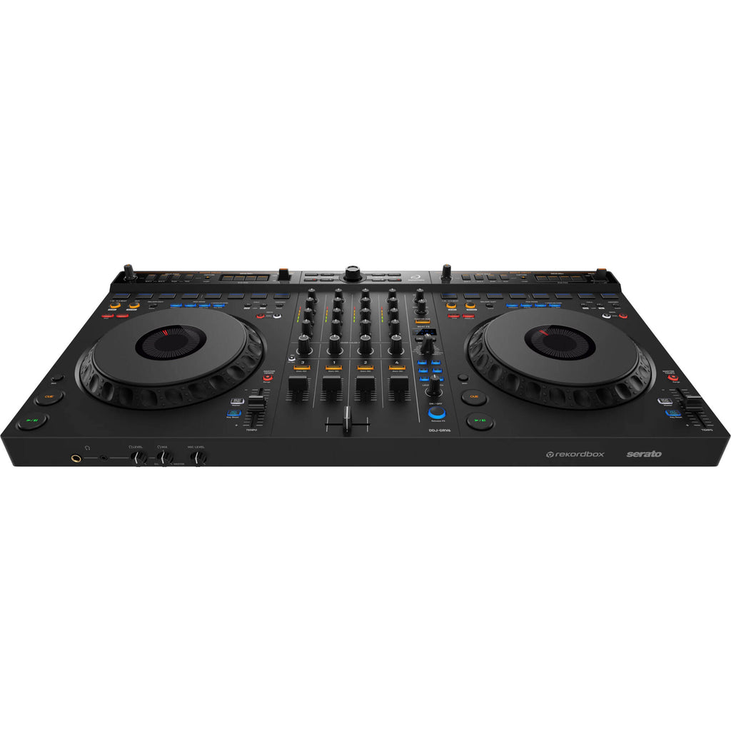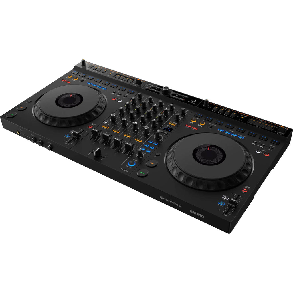 4-channel DJ Controller with Groove Circuit, 16 Performance Pads, Per-channel 3-band EQ, Beat FX, Stem Separation, Smart Rotary Selector, rekordbox and Serato Compatibility, USB-C Port, 2 x RCA Stereo Out, 2 x Headphone Out, and Mac/PC/iOS/Android Support