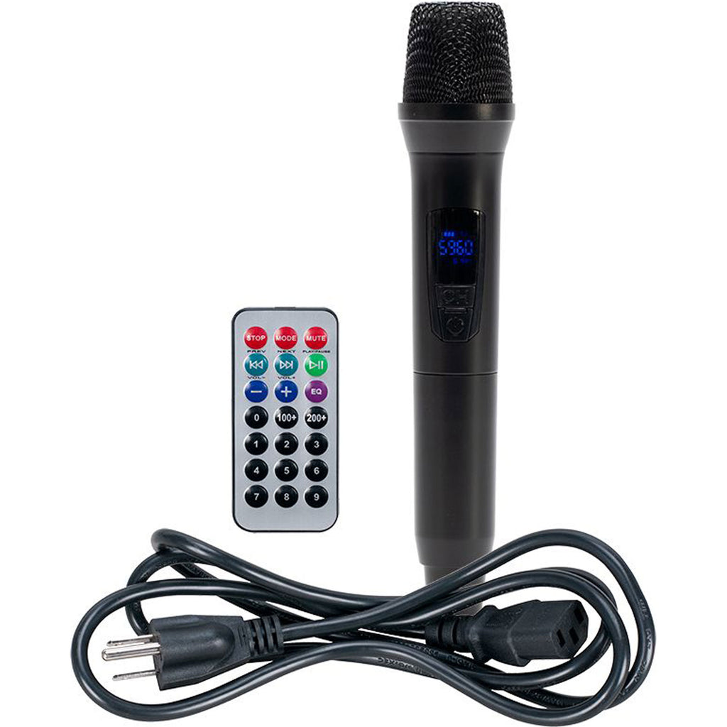 The APX12 GO BT includes a UHF handheld microphone and a wireless remote to control volume and track selection.
