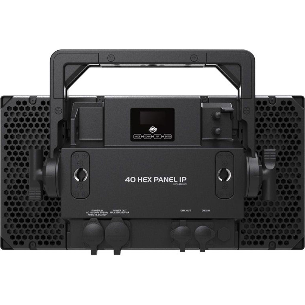 40 HEX Panel IP is a versatile, IP65-rated fixture designed for both indoor and outdoor applications as a wash light, blinder, or color strobe. It is equipped with 40x 20W HEX LEDs (6-in-1: RGBAL+UV) and features 10 independently controllable sections with Pixel Zone Control. Its durable all-metal, black housing is IP65-rated, offering protection against dust, sand, moisture, and liquids. There is a channel system on the front of the unit that allows for light shaping filters to be easily and conveniently added to the fixture.