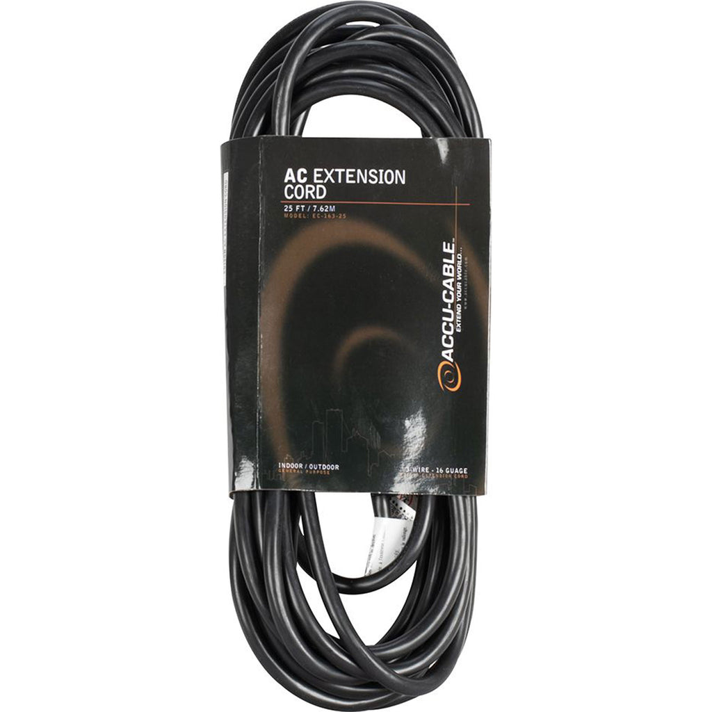 Accu Cable 25' Black 16 Gauge 3 Conductor Extension Cable With 3 Prong Edison Terminations Etl Approved.