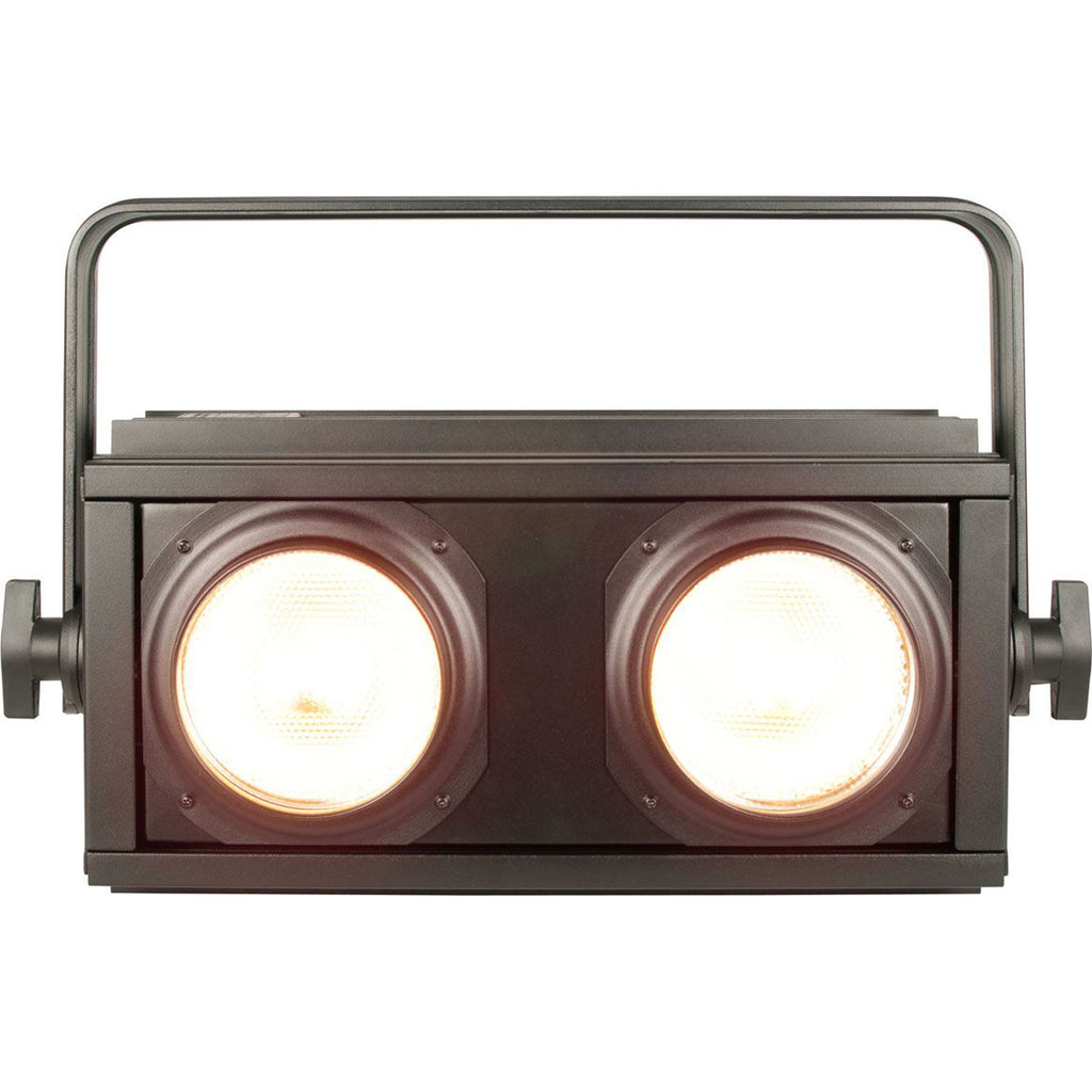 High Intensity, IPX4 Rated Audience Blinder/Strobe with Dual 110W Warm white LEDs and Dim to Warm Feature.