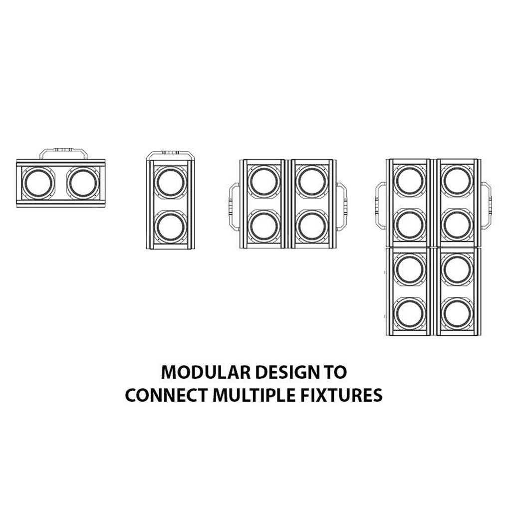 The Encore Burst 200 is an IPX4 rated, high intensity dual lens audience blinder/strobe. It's powered by two 110W warm white (2700K) CREE COB LEDs. The fixture is constructed with a rugged metal housing and an aluminum extrusion rails system to connect multiple fixtures to create a larger cluster of fixtures in a vertical or horizontal array. The fixture features a dim to warm effect that replicates a halogen-like dimming profile.