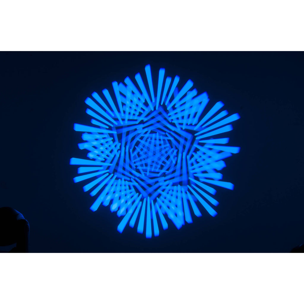 The Focus Spot 2X is fitted with 8 colors plus spot and split colors. It has 6 rotating, replaceable GOBO patterns plus spot. The color wheel and GOBO wheel work independent of each other. All GOBOs are indexable.