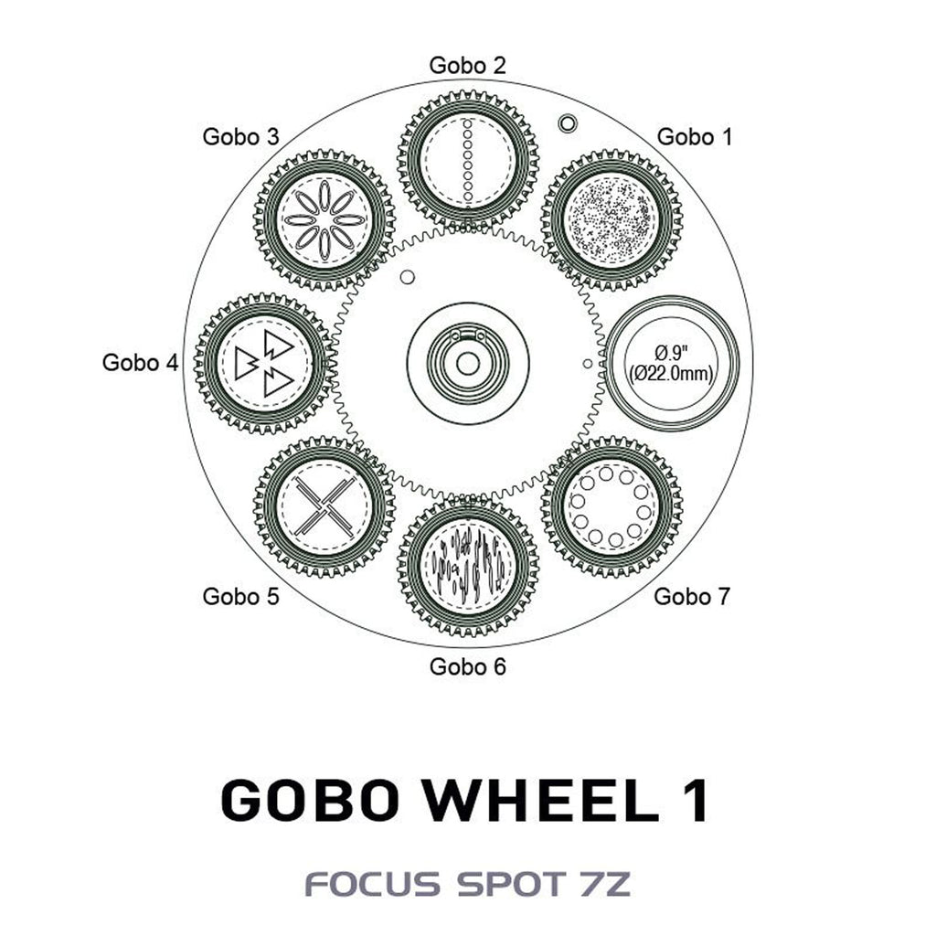 The fixture features two independent GOBO wheels, each of which incorporate seven slots for interchangeable, indexed-rotating patterns. In addition, it also incorporates an animation wheel with indexed rotation as well as two separate rotating prisms (4-facet circular and 6-facet linear). Motorized zoom (6° ~ 48°), focus and iris are integrated into the optical system as are two separate frost filters (Light to blur GOBO patterns and Heavy to generate a wash output).