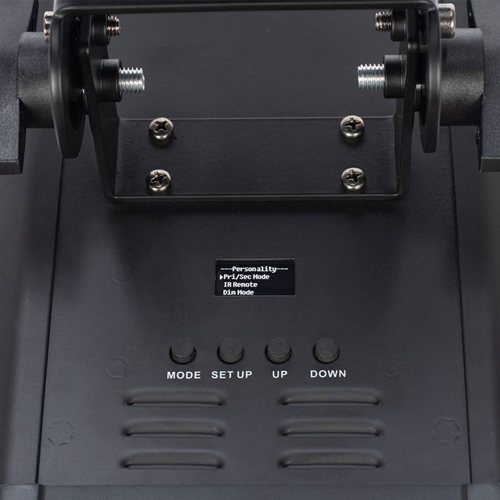 This fixture is equipped with two DMX channel modes and may be controlled via DMX, the included IR wireless remote or from the built-in programs, giving you complete control over your lighting setup. The digital DMX display with a 4-button menu makes navigation easy, while the 0-100% dimming (via DMX) manual adjustable zoom and focusing lens allow you to fine-tune the lighting to your exact specifications.