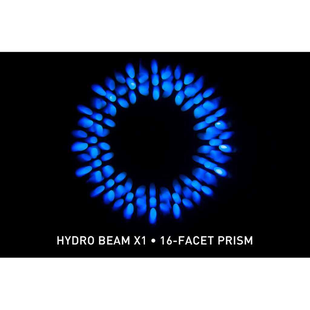 The ADJ Hydro Beam X1 is an IP65 rated professional moving head fixture with a 100W Osram Sirius HRI, 6,000 hour, discharge lamp that produces a razor sharp 3-degree beam. Its compact sizes offers quick movement.