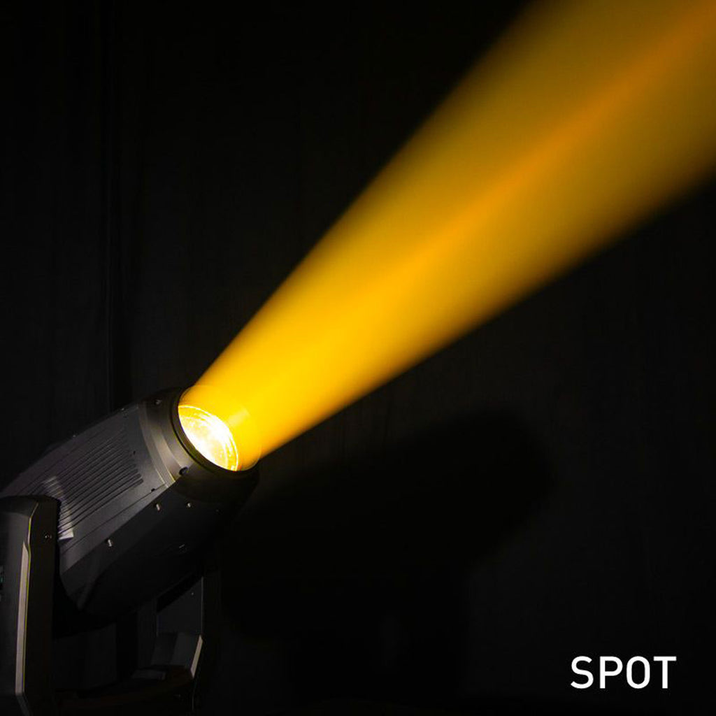 This fixture provides a range of creative beam-shaping tools sought by modern lighting designers. It includes dual-plane prisms, motorized zoom and focus, an animation wheel, and two GOBO wheels (one with 9 rotating/removable GOBOs and one with 14 fixed GOBOs).