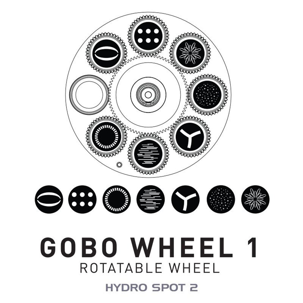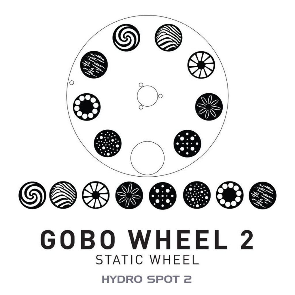 The Hydro Spot 2 offers two independent GOBO wheels, one with 8 static patterns and the other with seven rotating and replaceable GOBOs (either aluminum or glass). Motorized focus can be used to ensure patterns remain sharp across varying projection distances while dynamic effects can be produced using the integrated animation wheel. Wider surface projection and aerial beam effects can be generated using a choice of two indexed, rotating prisms: 5-facet linear or 6-facet circular. Finally, the fixture's 15,000 lumen white light LED engine allows for smooth 0-100% digital dimming (with a choice of modes and curves) as well as variable speed strobe effects.