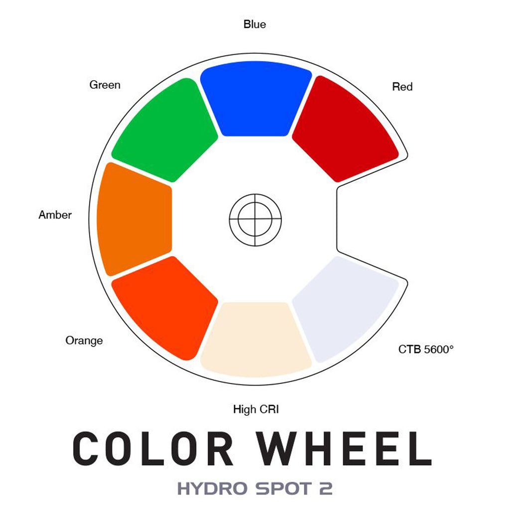 • Color wheel with 7 dichroic colors + white (includes CTB and High CRI filters