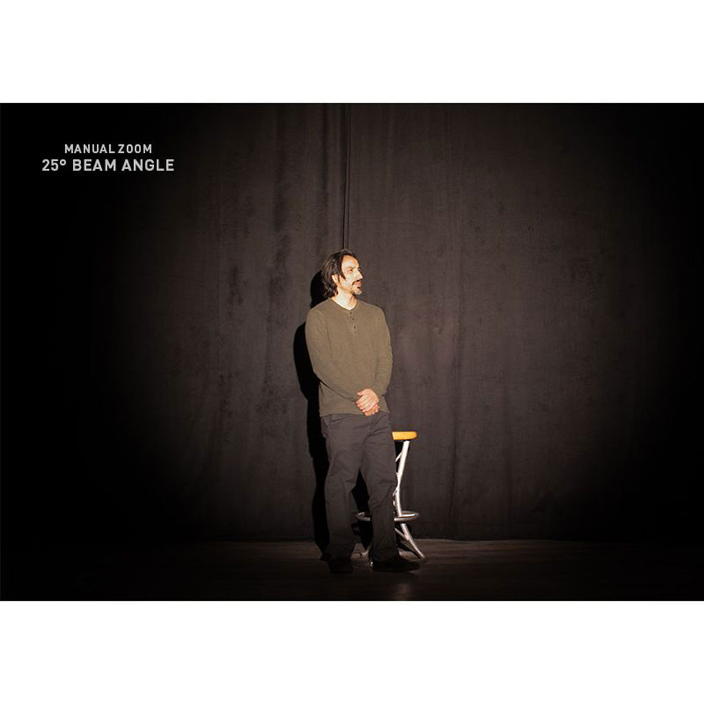 The Par Z100 3K2 is powered by a 100-Watt, 3000K Warm White C.O.B. LED engine with a CRI greater that 90. The 3000K color temperature offers a good approximation to the output of a traditional lamp. There are 5 manual zoom beam angles to choose from: 9°, 15°, 20°, 25° or 30.° A traditional par can gel frame is included so that designers can diffusion filter for even more control of the fixture's output.