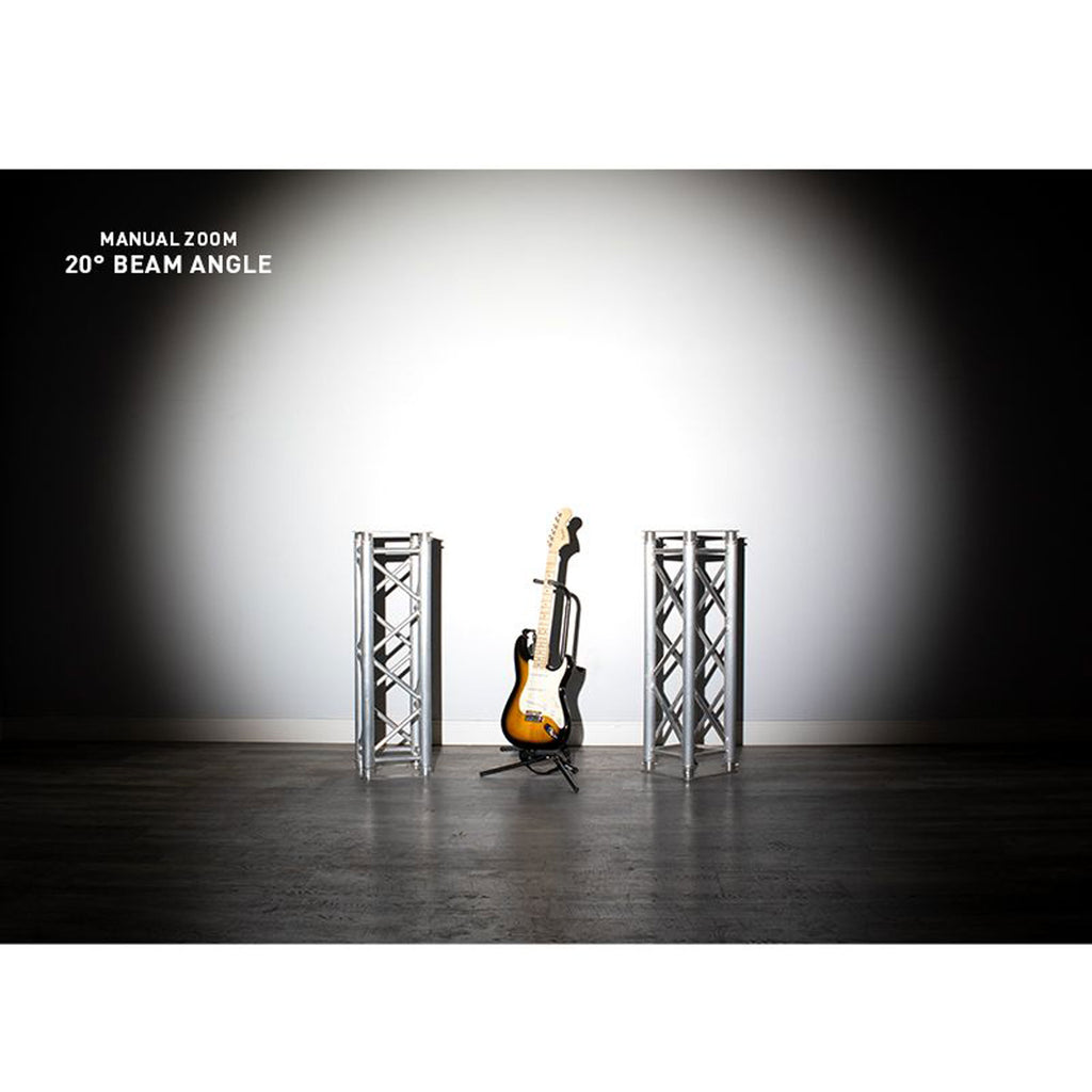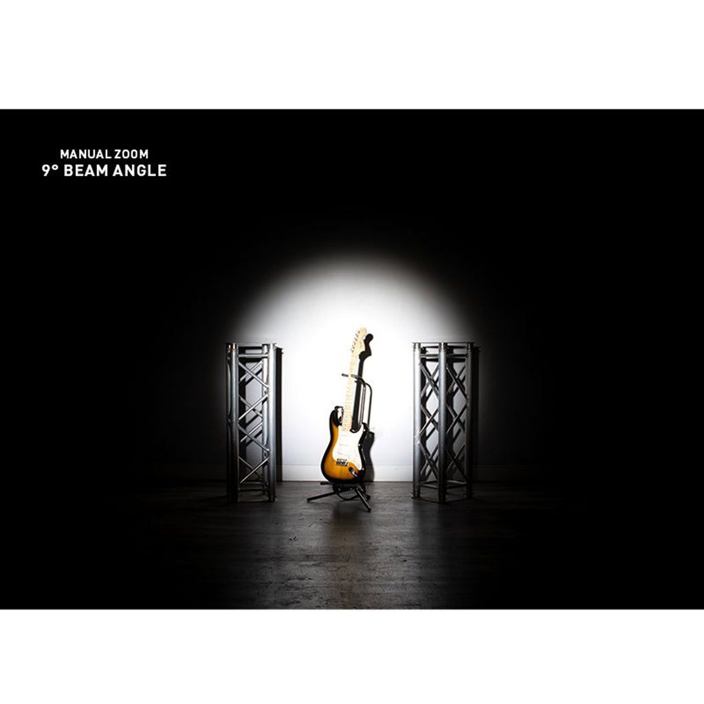 The Par Z300 6K is powered by a robust 300-Watt, 6000K cool white COB LED engine with a CRI over 90. The 6000K color temperature closely mimics 'daylight white." It offers seven manual zoom beam angles-9°, 15°, 20°, 25°, 30°, 35°, and 40°-and includes a traditional Par Can gel frame for adding diffusion filters to further control light output.