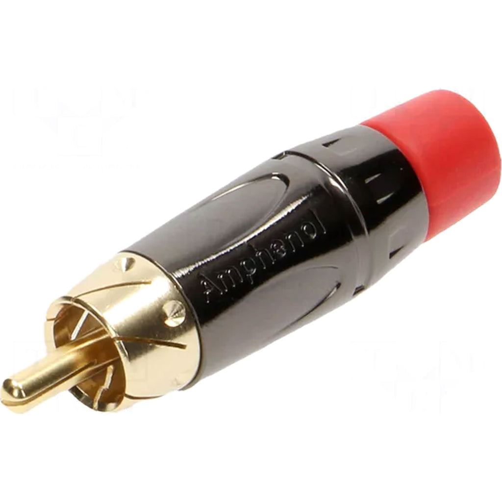 Amphenol ACPL-CRD Gold Plated Male RCA Phono Cable Mount Connector (Black Chrome/Red, 50 Pack)