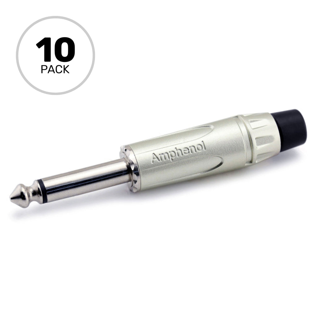 Amphenol ACPM-KN Professional 1/4" TS Mono Phone Plug (Nickel/Silver, 10 Pack)