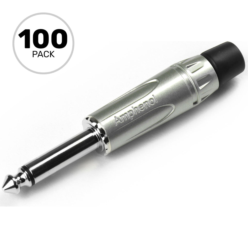 M Series II Musician Range Professional 1/4" TS Mono Phone Cable Mount Plug with Diecast Shell - Black/Silver - Pack of 10 Connectors