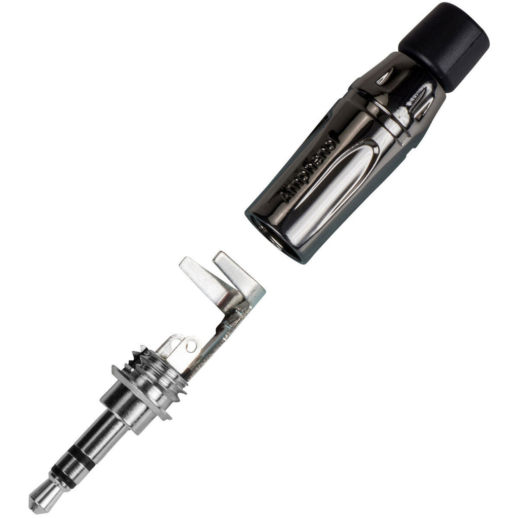 Cable Mount 3.5mm TRS Stereo Mini Plug Connector with Extended Shaft for Mobile Devices - Black Chrome Shell with Silver Conductors
