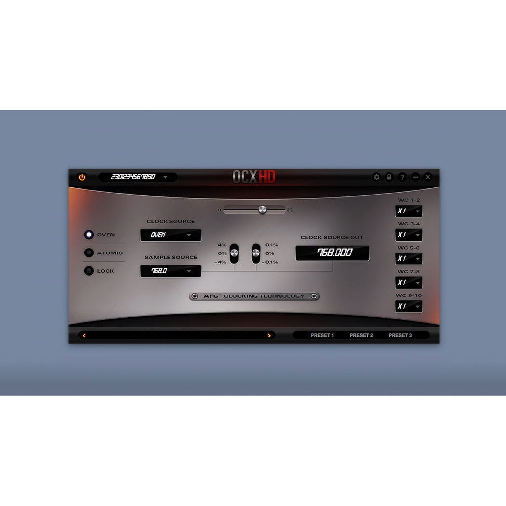 Additionally, OCX HD offers two Word Clock Inputs and a Video Sync Input, which can resolve to a huge variety of SD and HD formats, as well as clock distribution with gear-boxing, and pull-up and pull-down rates, as featured in the triple clock powerhouse, Trinity Master Clock. A 10 MHz Input allows for syncing with Antelope's newest Atomic Clock - 10MX.