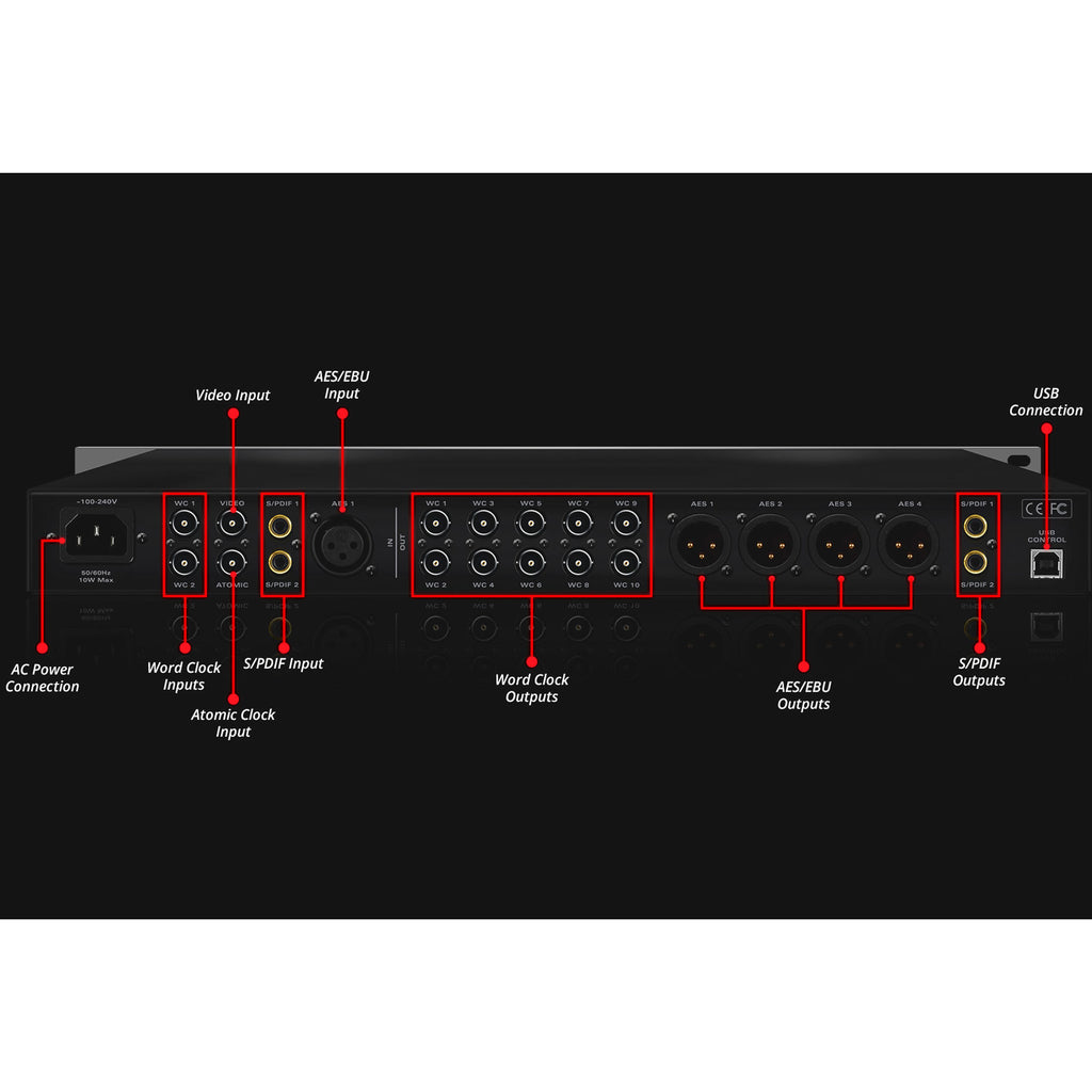 - Additional connectivity via 4 AES/EBU, 2 S/PDIF clocking outputs (up to 192kHz)