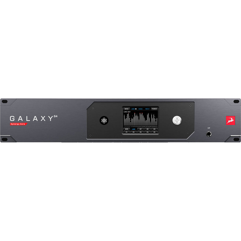 Galaxy 64 Synergy Core is a high-end recording system that connects your entire studio within a 2U rack space while providing high-fidelity audio and onboard plugin processing for your most demanding projects. With Dante, HDX and Thunderbolt connectivity, the world's first 64-channel AD/DA converter offers unbeatable flexibility when moving sound around your high-profile production facility, live stage, broadcast, or other enterprise applications. The interface is designed to be the hub of your entire recording environment that eliminates the need for any external modules & expansion cards, thus centralizing your entire setup.