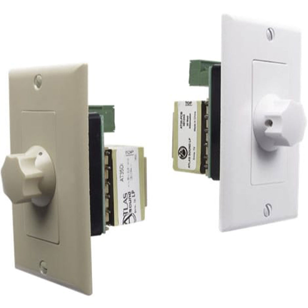 Decora style High-quality auto transformer series provides the advantages of excellent frequency response, low insertion loss and reliable performance for volume control application in 25 and 70.7-volt systems. Attenuation is accomplished in ten make before break steps plus positive off position. (No stop between maximum and off position to prevent switch damage). Contacts are silver plated for noise-free operation. Features a removable terminal block, and come complete with white and ivory plastic plates with matching skirted knobs.