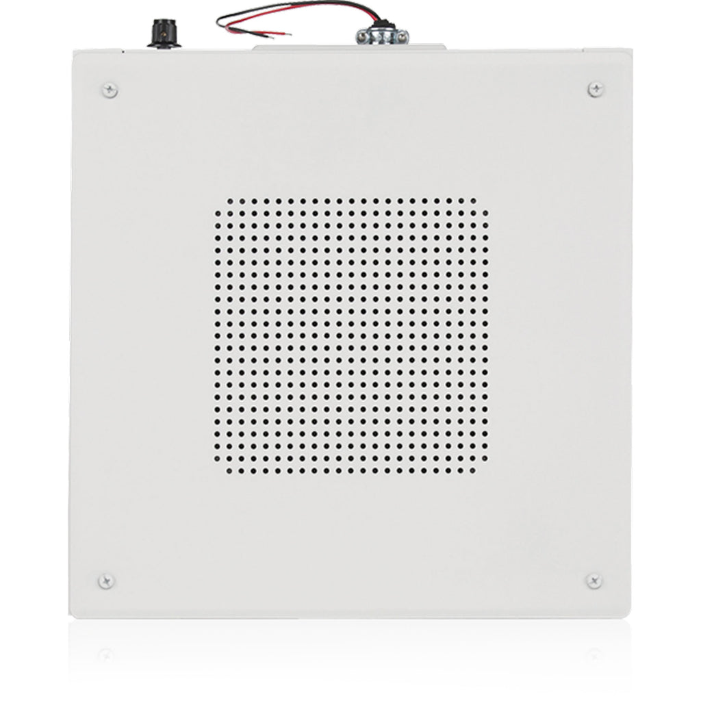 The M1000-W sound masking speaker assembly is designed to accurately reproduce the required spectrum of masking signal into the plenum space. The innovative 734 cubic inch square enclosure ensures ample low frequency response. A specially designed 8" dual cone speaker is included in the package. A high efficiency 70.7V internal transformer is coupled to an external tap selector switch for easy system tuning.