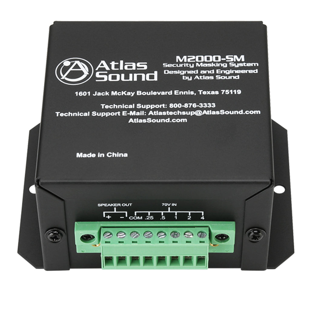 The AtlasIED M2000-SM is a valuable security product that can be used on any flat surface, including windows, doors, walls, and ducts. The subtle design of the M2000-SM two-part transducer / transformer provides discrete placement and mounting options. Incorporating NXT™ Exciter Technology in a 1", coil-mounted plate, the transducer offers installation, while the transformer can be remote-mounted and adjusted with variable tap settings. Note: The M2000-SM requires a sound masking generator and 70.7V amplifier for operation.