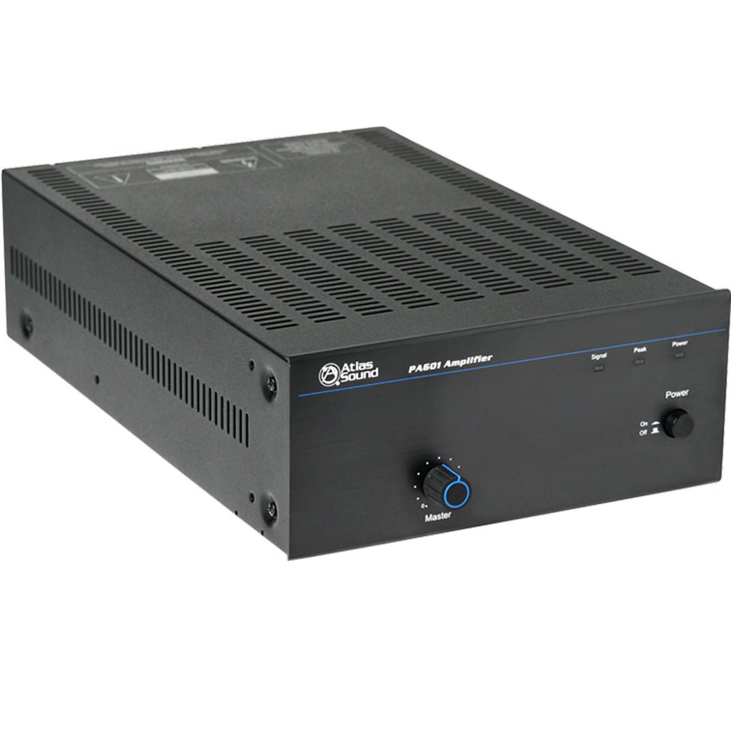 The PA601 is the perfect choice for distributed background music (BGM) systems when the requirement is simple amplification without MOH or advanced mix functionality.
