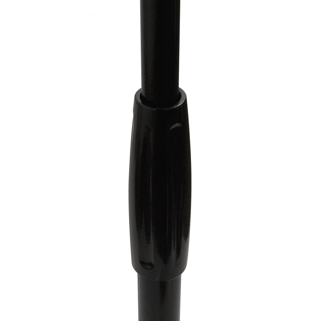 This versatile stand is adjustable from 19" to 30" to meet the needs of seated instrumentalists and performers. Model includes two section metal tubing with 3 piece clutch for easy vertical height adjustment. Unit also features three, low profile metal legs with cup terminations for optimum stability and balance. The end is threaded 5/8"-27 and includes a lock-nut ring for versatile positioning of accessories or extension boom. The T1930 has a base spread of 25" (653mm) inches and weighs 4lbs.