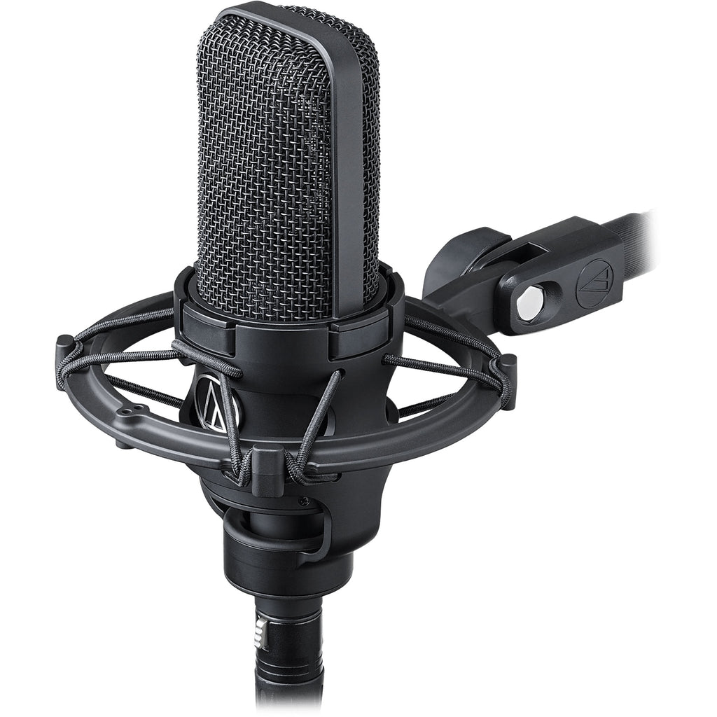 The latest edition of the legendary AT4033 microphone, the side-address AT4033a offers low-noise, symmetrical, transformerless circuitry that results in exceptional transient response and clean output signals. A studio classic and bluegrass favorite, the AT4033 cardioid studio condenser is the microphone that broke the US$1000-barrier in its class. A strong up-front presence characterizes the sonic signature of this 40 Series pro-audio classic. The AT4033a's 80Hz high-pass filter easily switches between flat frequency response and a low-end roll-off that diminishes ambient noise and popping with closely-miked vocals. Includes the AT8449a shock mount for superior isolation.