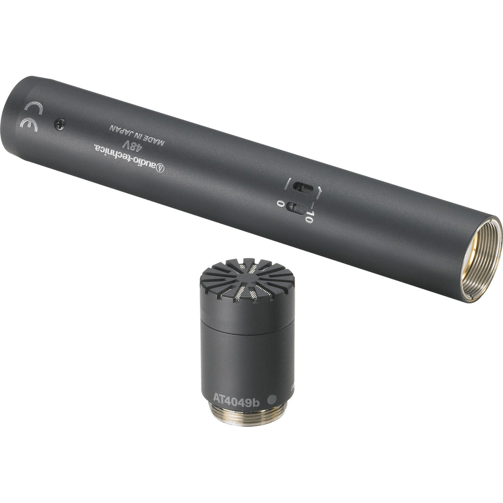 The AT4049b consists of two modular subassemblies: an AT4900b-48 body and an AT4049b-EL omnidirectional head capsule (both available separately). Additional interchangeable capsules are available in cardioid (AT4051b-EL) and hypercardioid (AT4053b-EL).