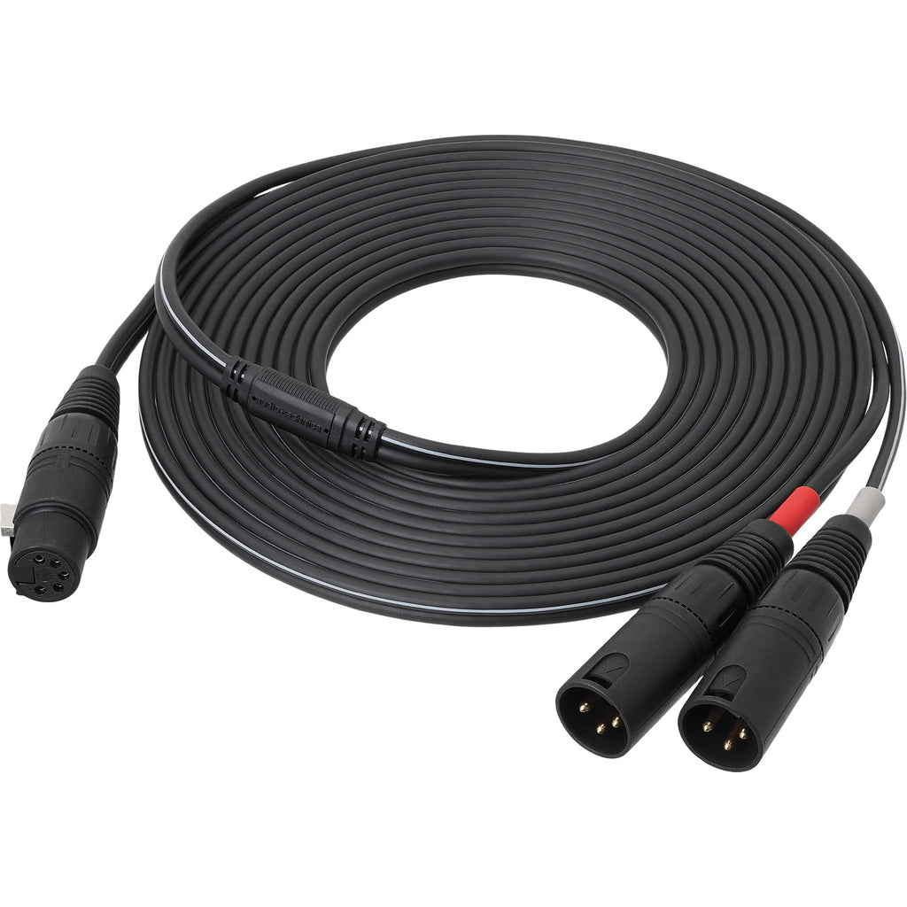 - CABLE: 5.0 m (16.5') long, 8-conductor, shielded, vinyl-jacketed stereo cable with 5-pin XLRF-type connector at microphone end and two 3-pin XLRM-type connectors at output end