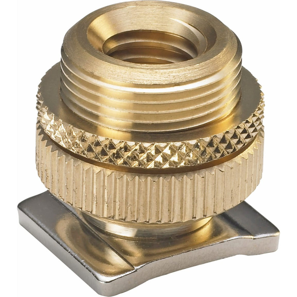 This Camera Shoe Mount Adapter from Audio-Technica converts a standard shoe mount into a 5/8"-27 (outside) and 3/8"-16 (inside) threaded base so you can screw on a standard clamps and mounts for microphones or lighting accessories.