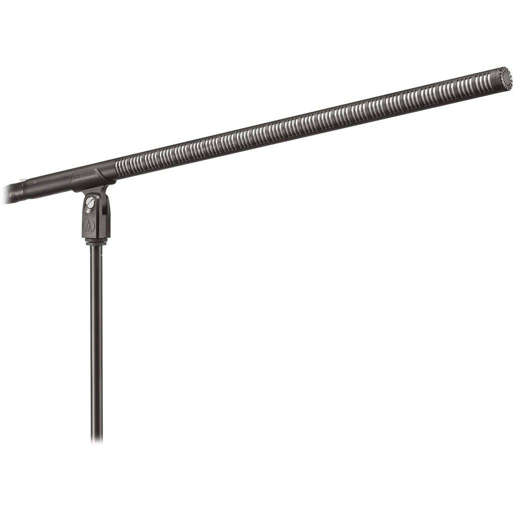 At 21.22" long, Audio-Technica's new BP4071L is among the longest shotgun microphones on the market today. Originally developed at the request of broadcast professionals, this microphone boasts an extremely narrow polar pattern, excellent rejection from the sides and rear of the microphone, along with crisp, intelligible audio reproduction. It offers switchable low-frequency roll-off and a 10 dB pad, and comes generously equipped with a stand clamp, windscreen, and case.