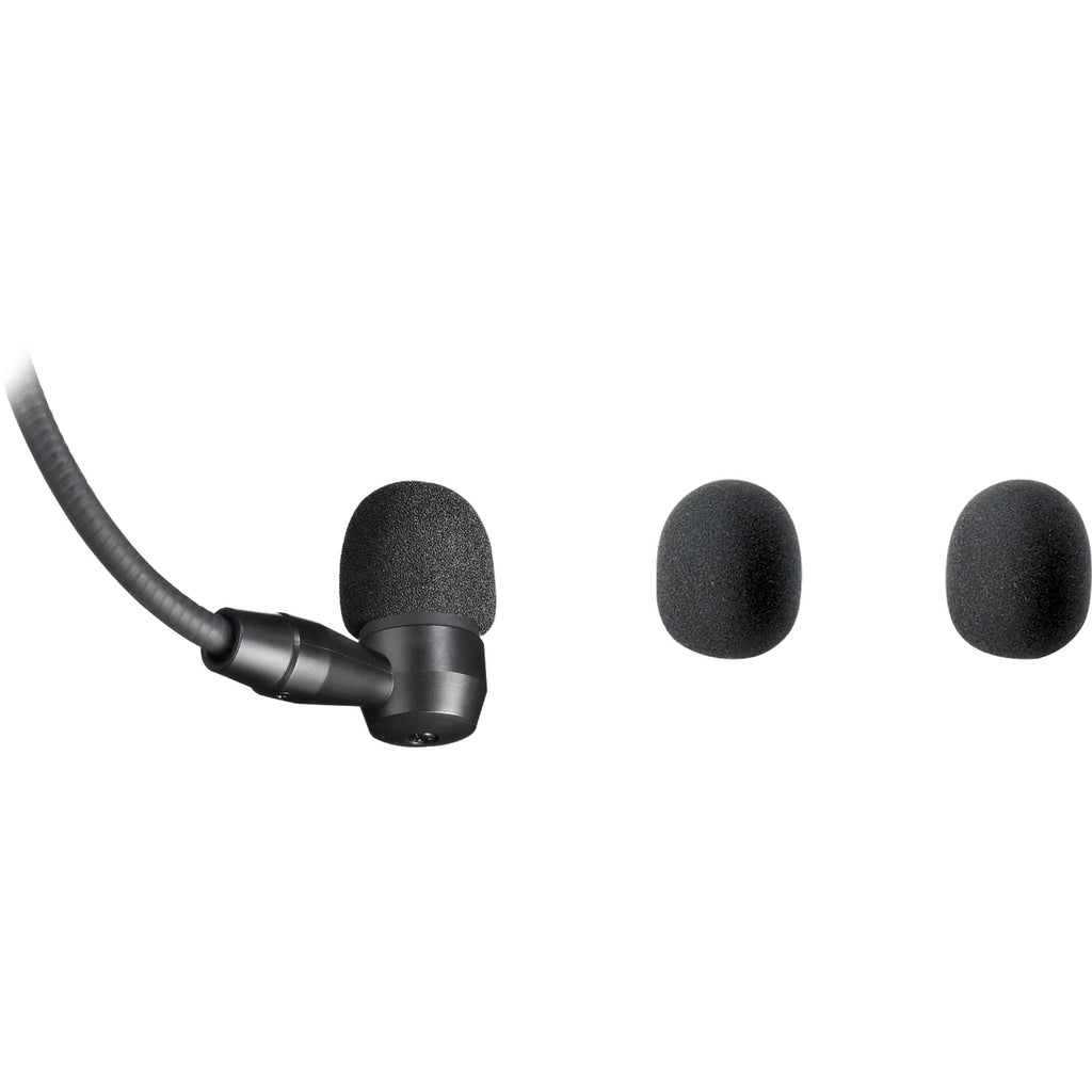 The headset's microphone has a cardioid polar pattern tailored for pickup of speech with maximum voice intelligibility over a wide range of frequencies. It is more sensitive to sound originating directly in front of the element, making it useful in reducing pickup of unwanted sounds. The flexible gooseneck boom swivels for easy positioning on either the right or left side.