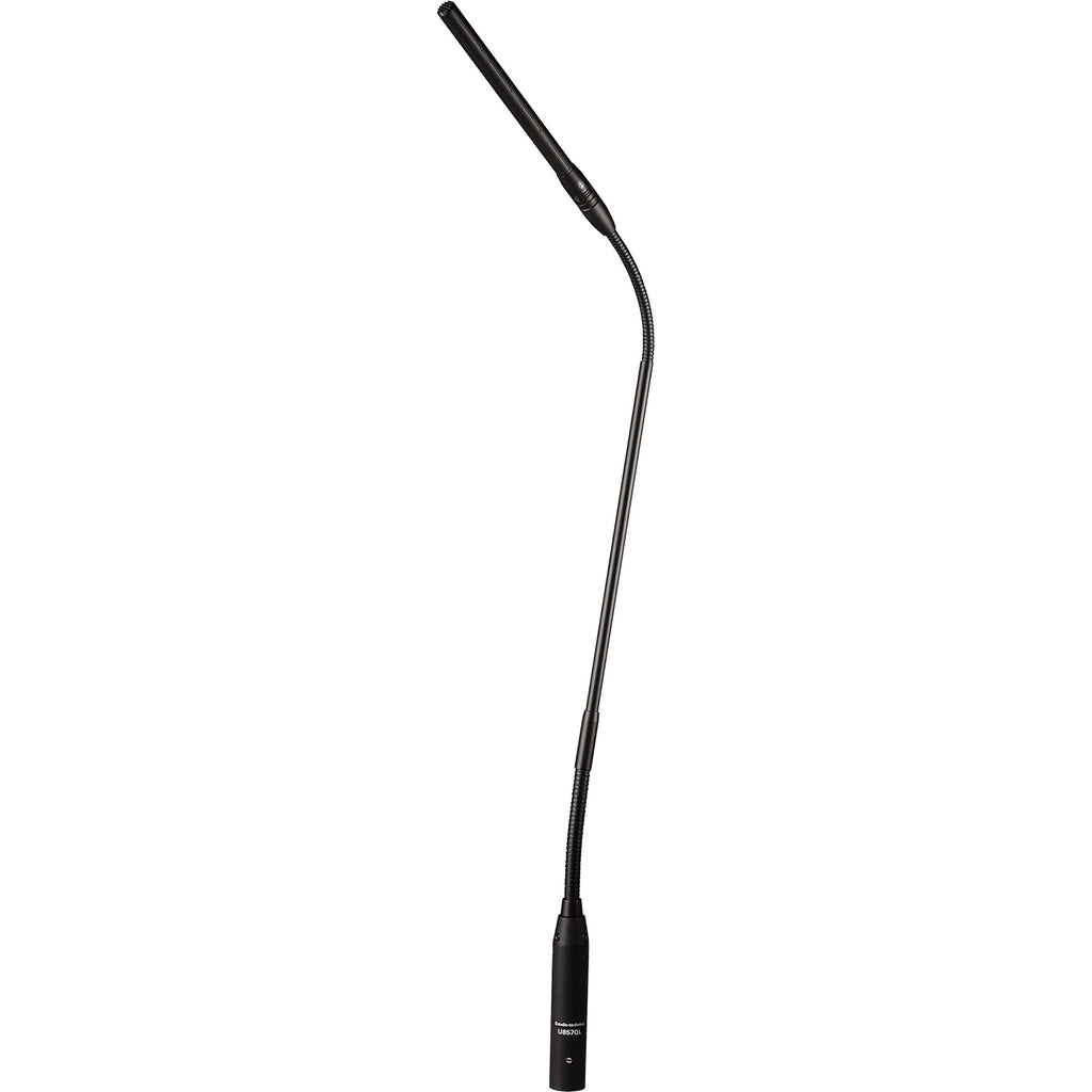 With advanced capsule design coupled with carefully engineered internal electronics, the U857QLU UniLine condenser delivers clear, consistent sound for a variety of installed applications. The 23.74" version of U857QU, the U857QLU features Audio-Technica's UniLine line-cardioid element. The microphone is designed to plug directly into a panel- or desk-mounted XLRF-type connector. Its ultra-flexible, robust gooseneck permits easy adjustment into desired shape while resisting inadvertent repositioning. Featuring UniGuard innovations that offer unsurpassed immunity from radio frequency interference, the U857QLU accepts new interchangeable elements, available in cardioid, hypercardioid, omnidirectional and UniLine line cardioid polar patterns. The phantom-powered microphone also offers an 80 Hz low-cut UniSteep filter that reduces pickup of low-frequency ambient noise.