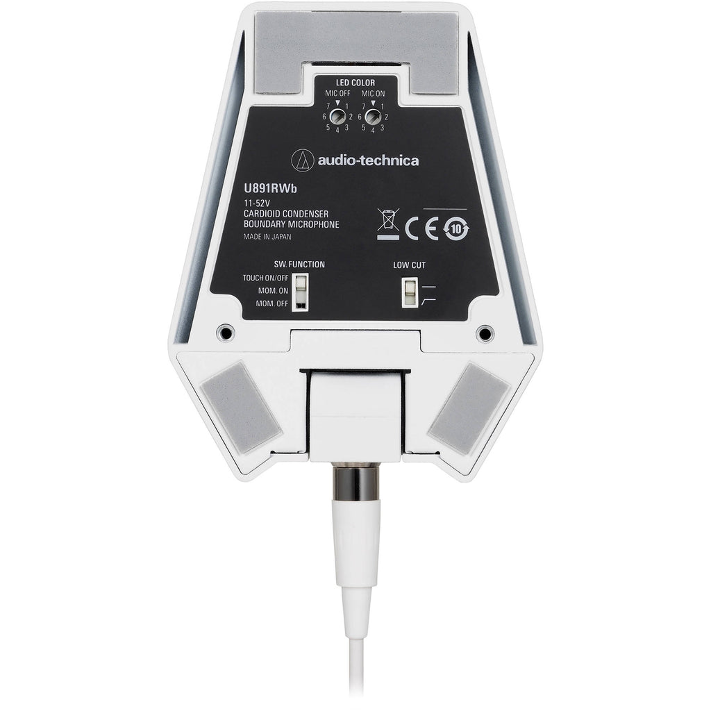 Designed to deliver easy, flexible control in conference and boardroom installations, the versatile U891Rb condenser boundary microphone features a touch-sensitive capacitive-type user switch that can be set to three modes: touch on/off, touch to talk, and touch to mute. The phantom-powered microphone is equipped with a unique PivotPoint rotating output connector and a two-state RGB LED status indicator. UniGuard innovations offer unsurpassed immunity from radio frequency interference; additional interchangeable elements are available separately in omnidirectional (360°), cardioid (120°), and hypercardioid (100°) polar patterns; an 80 Hz low-cut UniSteep filter reduces pickup of low-frequency ambient noise. The microphone's heavy die-cast case and silicon foam bottom pads minimize coupling of surface vibration to the microphone, while threaded inserts on the bottom of the microphone allow it to be mounted with screws for increased security. The unit's self-contained electronics eliminate the need for an external power module.