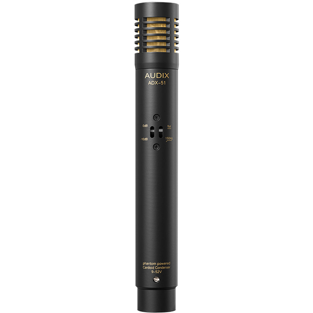 The ADX51 cardioid studio condenser microphone is very easy to position, durable, and manufactured to high standards and tight tolerances. The ADX51 has a precision machined brass body, durable black E-coat finish, steel mesh grill, and gold plated XLR connector.