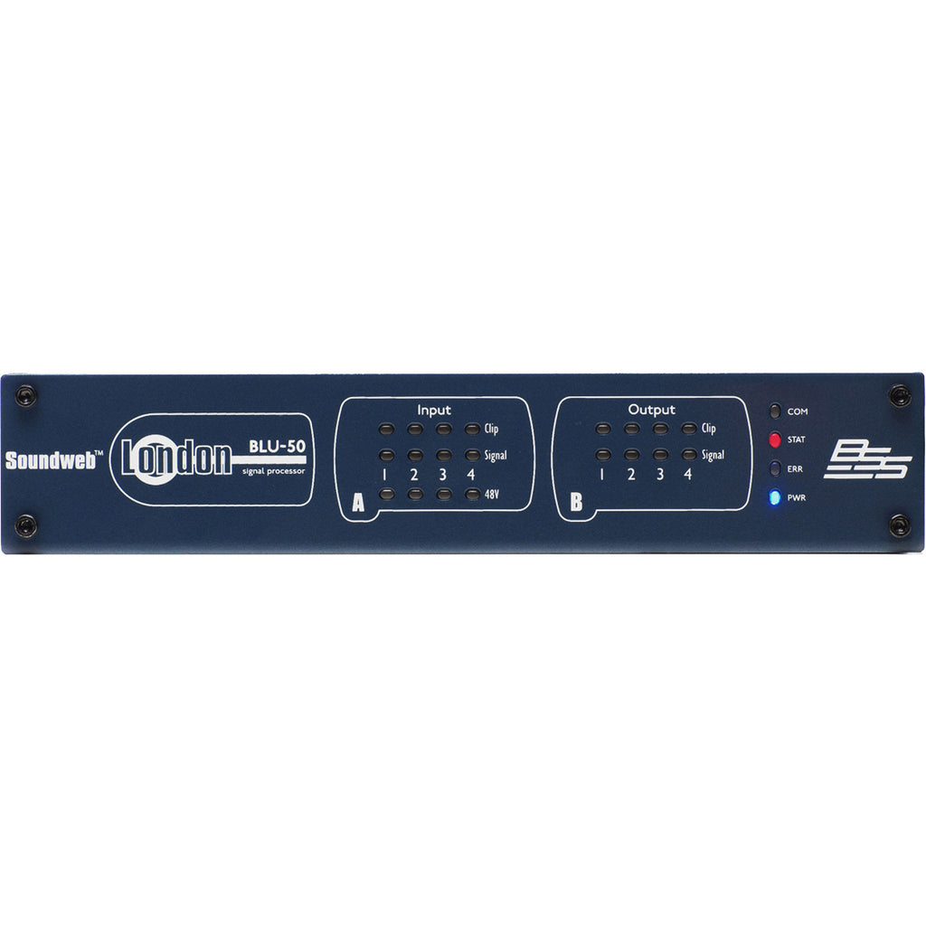The BLU-50 is configured, controlled and monitored from HiQnet Audio Architect and is compatible with other members of the Soundweb London family. Its 48 channel BLU link bus represents channels 1-48 of the larger 256 channel BLU link bus when integrated with the BLU-800, BLU-320, BLU-160, BLU-120, BLU-BIB and BLU-BOB devices. Up to 60 BLU link compatible devices can share channels on a single bus.