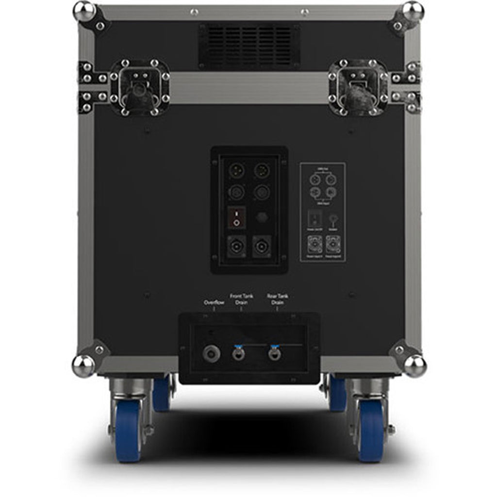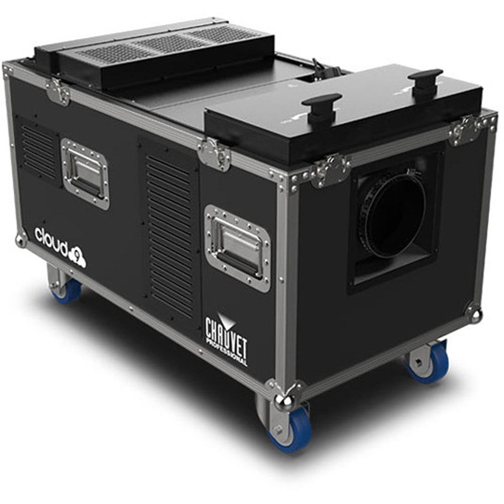 Cloud 9 is an impressive, low-lying fogger that creates thick, cloud-like effects with a high-impact output ideal for use on large-scale stages, theatres, live performances and theme parks. The robust unit has a best in class heat-up time of 4 minutes and no dry ice or CO2 is needed, which means no special licensing/training is required. Because it works without a special coolant or compressor, only water and fog fluid is needed for continuous output. The powerful unit weighs in at 121 lbs and is equipped with several handy transport features such as its road case housing, metal handles and wheels to easily glide across any stage. Control it on the LCD display or via DMX.