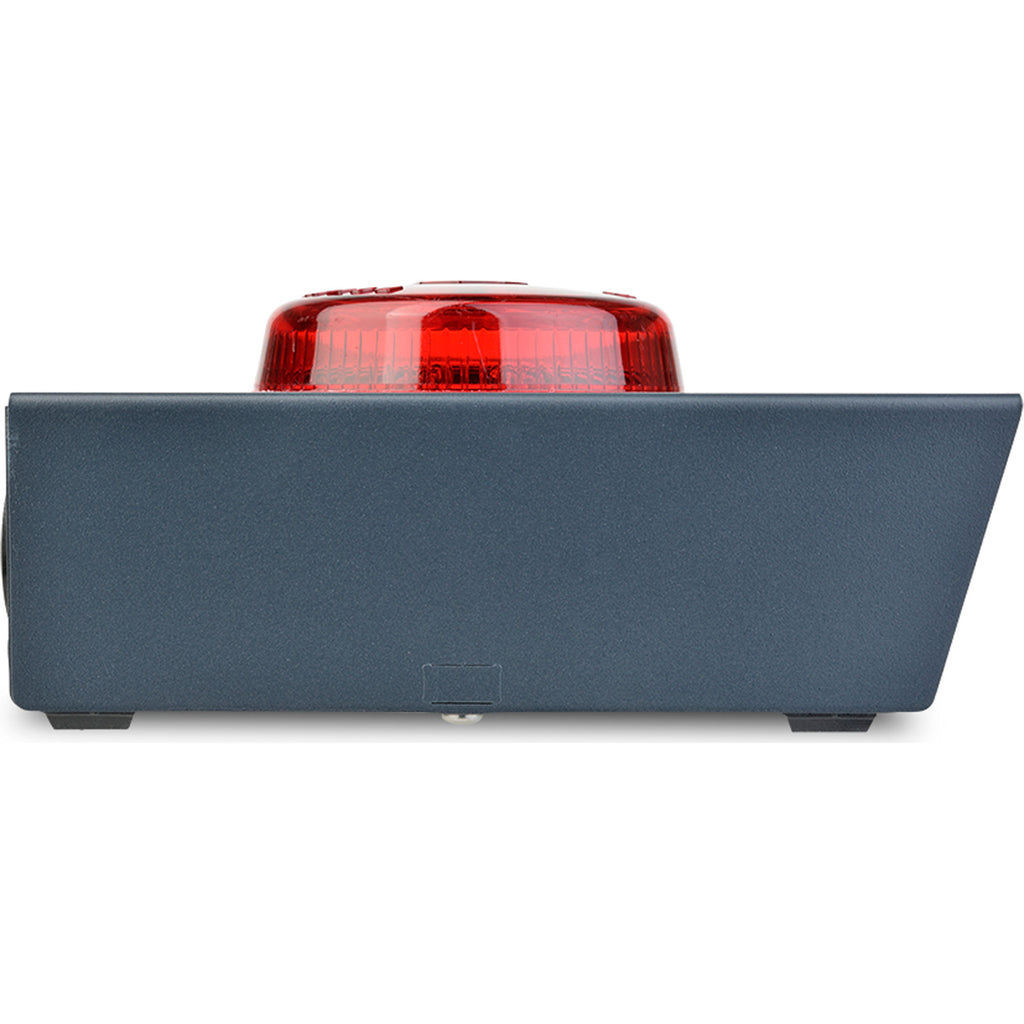 New LED design with dimmer. Provides both a visual and audible indication of a call signal on the intercom channel. Frontpanel mode switch selects flasher, ring or both. Allows control of both tone volume and light brightness.