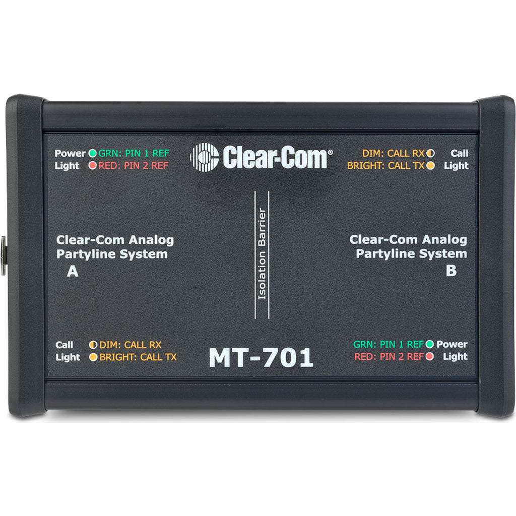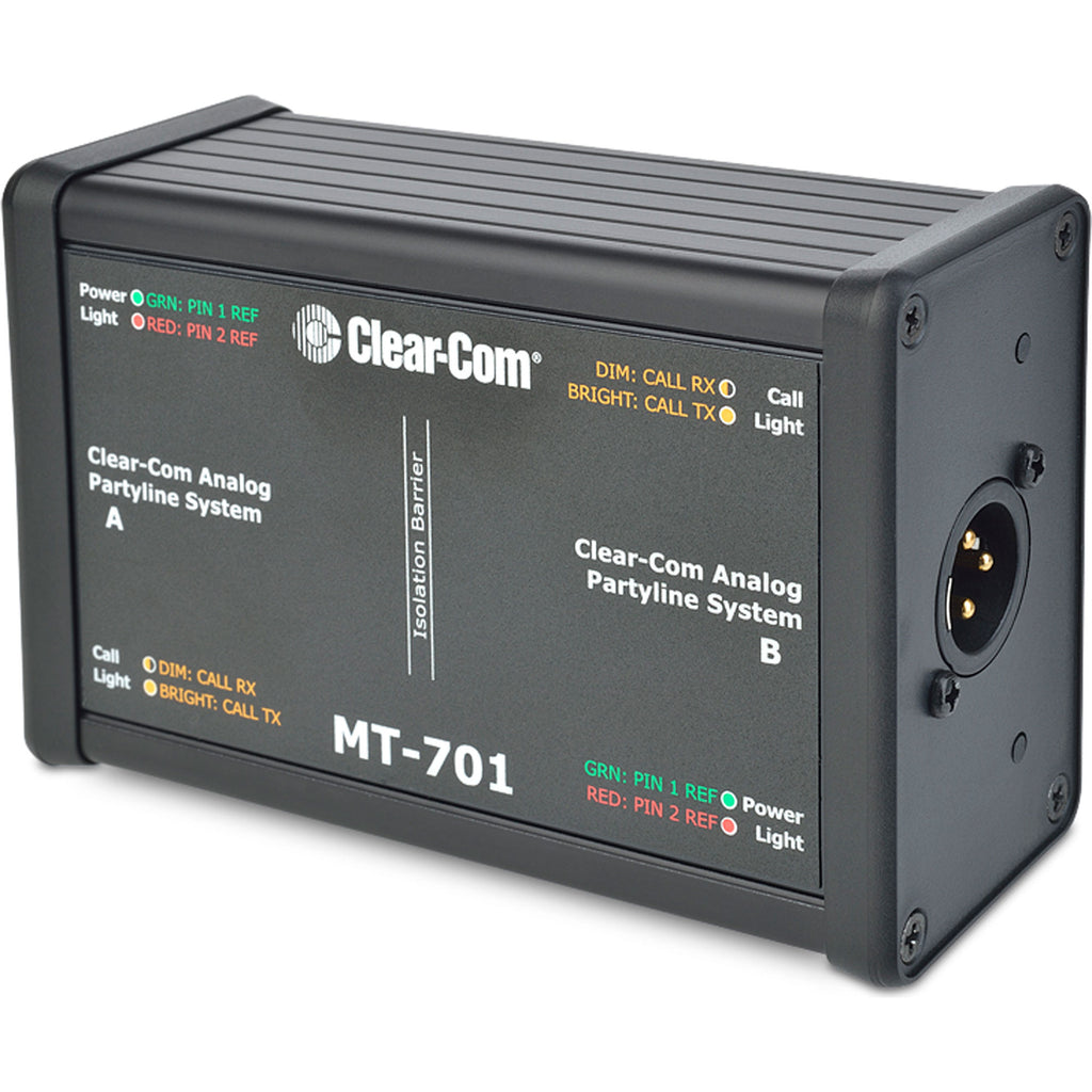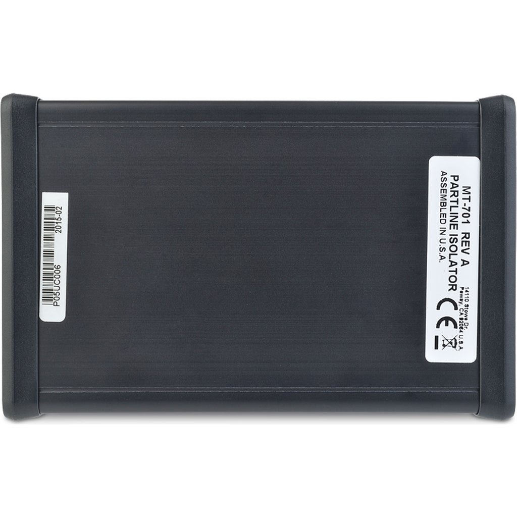 The MT-701 is an isolation box that is used to reduce hum in Encore Partyline products when multiple grounds are present. The MT-701 can also be used to bridge two Encore Partyline systems together.
