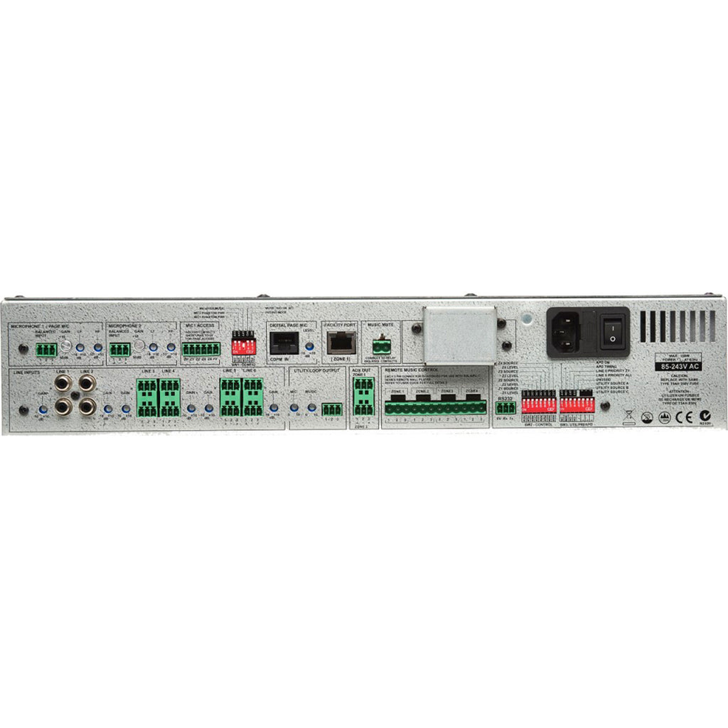 • Zone 1 Facility Port for connection of optional remote input plates: LM-2 mic/line input + music controls, BT-1 Bluetooth input, L-1 line input, M-1 mic input