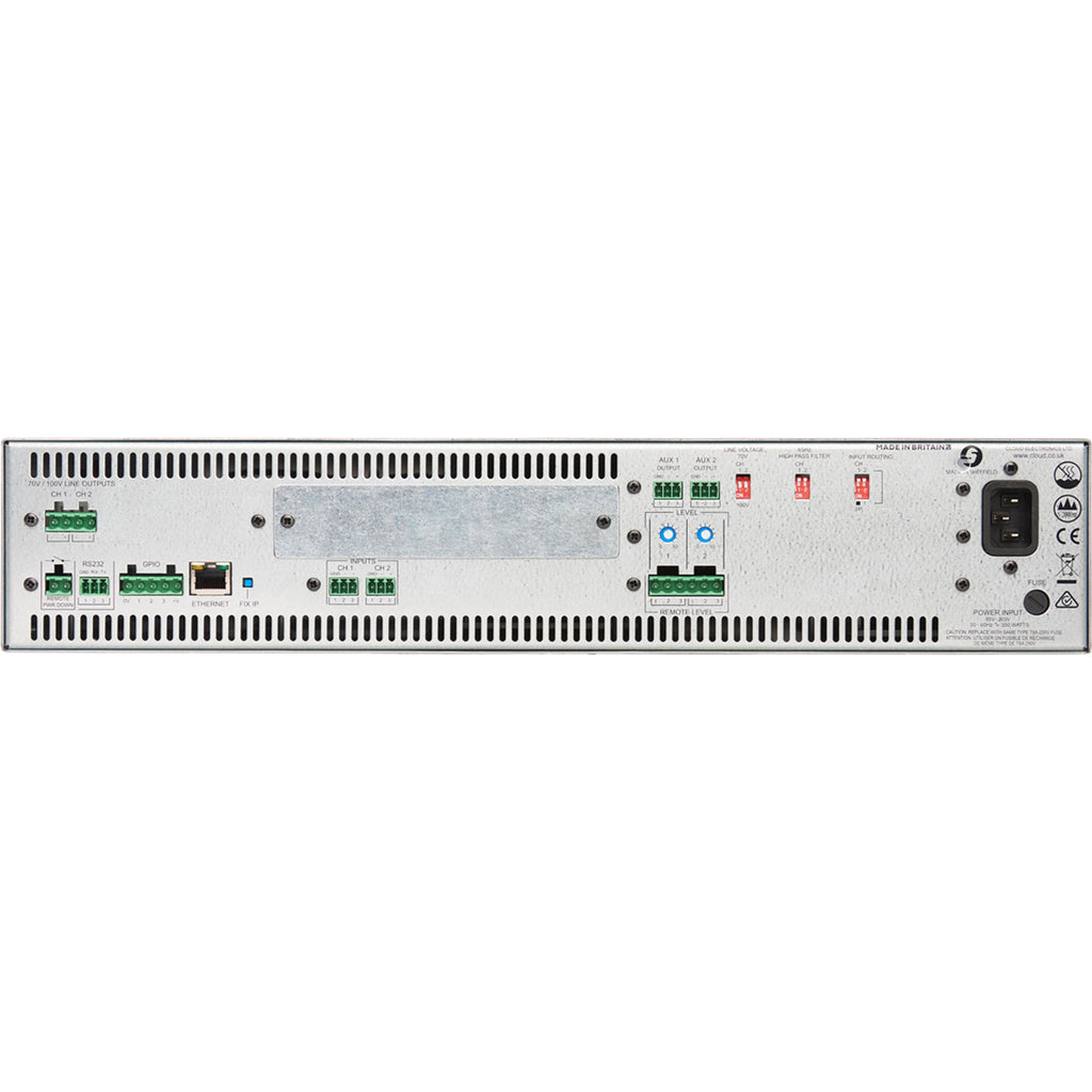 The CV-Digital series amplifiers are compatible with standard Cloud RL Series remote level control plates. DSP parameters are accessible via RS-232 and Ethernet, for interfacing to third-party control systems. A 3-way GPIO port can be configured for external master mute and fault condition signalisation