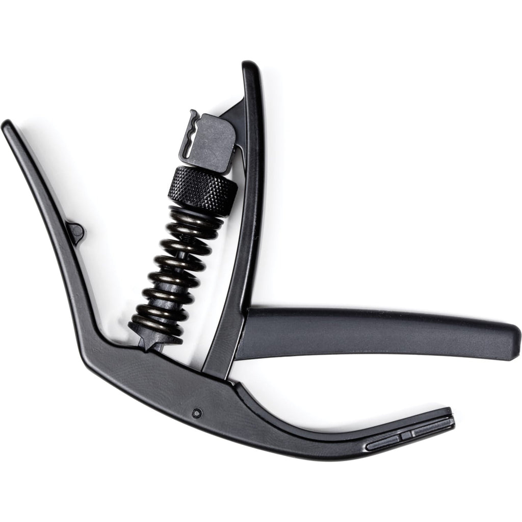 The NS Artist Capo utilizes a patented tri-action geometry reducing the force required to open and close the capo while applying even tension regardless of neck profile. Combined with the micrometer tension adjustment and direct horizontal pressure, the NS Artist Capo virtually eliminates pulling the strings side to side and the need to retune during use. Additionally, the trigger-style design and lightweight aluminum construction adds no obstruction or noticeable weight to the neck of the instrument. The NS Artist Capo includes an NS Mini/Micro Tuner mounting bracket, allowing you to add tuning capabilities to the capo. Tuner sold separately.