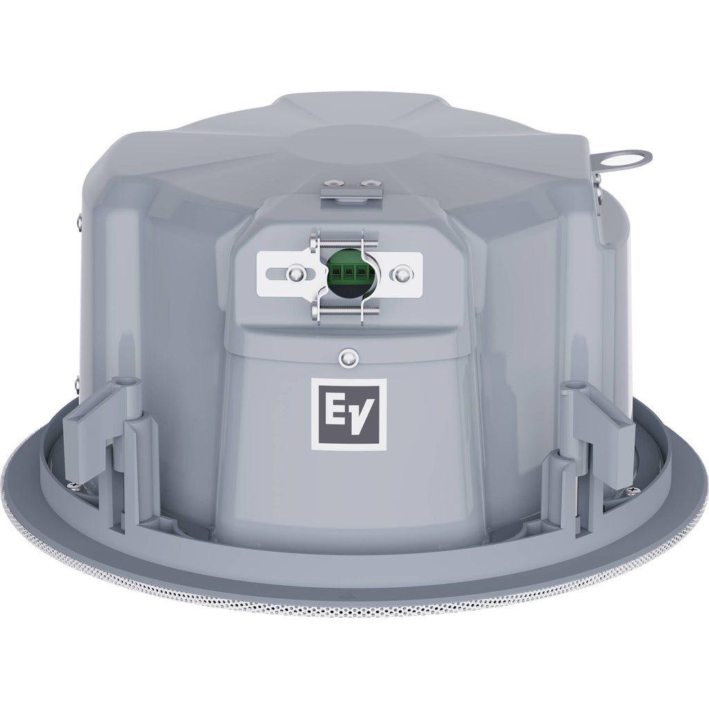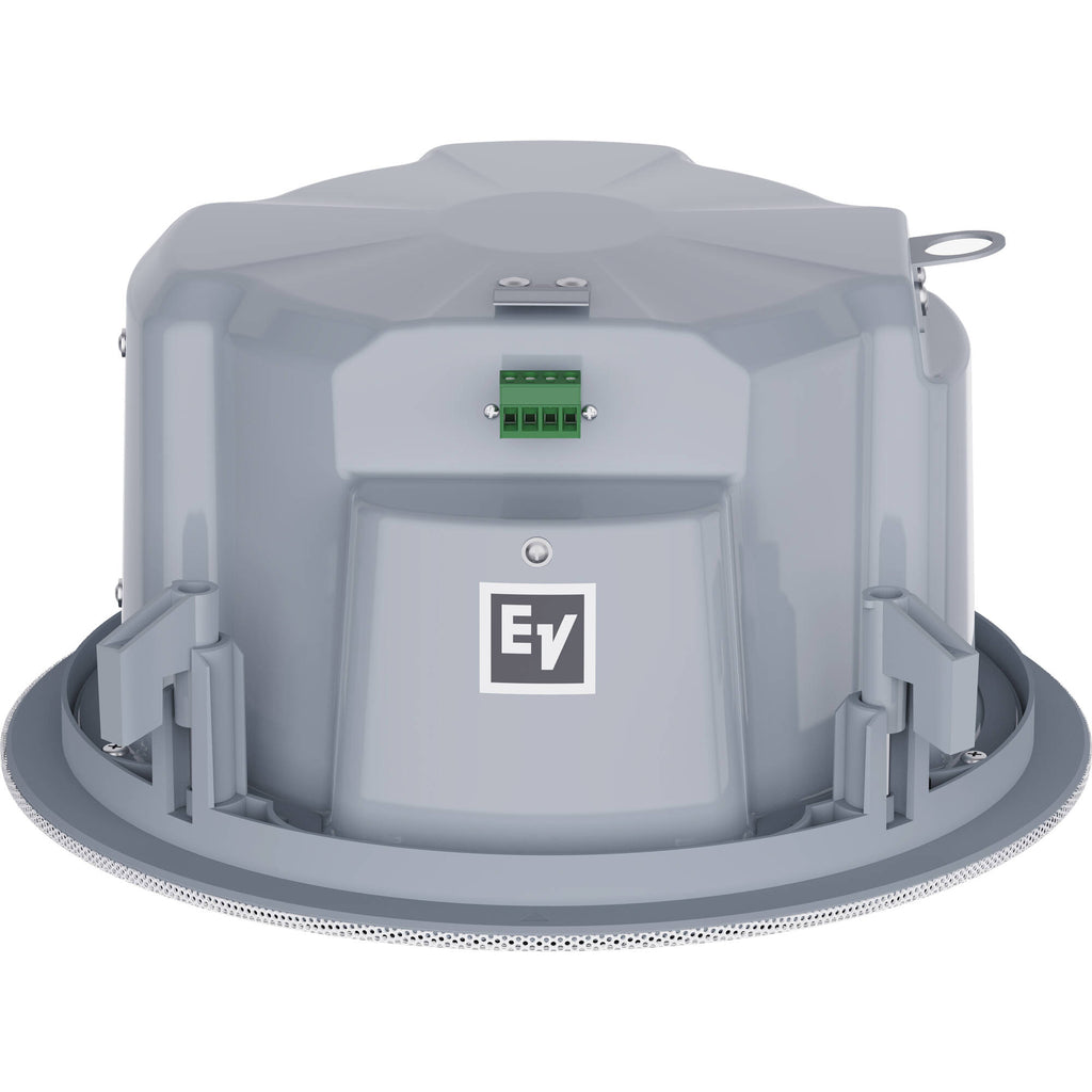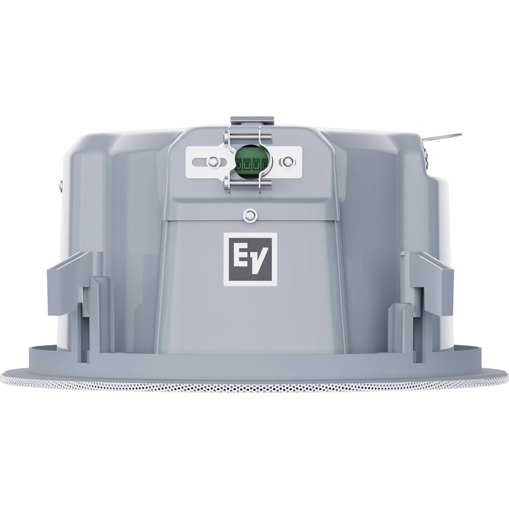 The Electro-Voice EVID-EC6.2 is a complete 6.5-inch coaxial two-way loudspeaker that offers excellent sound quality and outstanding reliability with firstclass aesthetics. The EVID-EC6.2 utilizes a transformer that offers a selection of 1.88 (70-V only), 3.75, 7.5, 15 or 30 watts delivered to the loudspeaker system using either 70-V or 100-V lines, or 8-ohm bypass. Selection is via a convenient switch on the front baffle. The perforated grille is finished in semi-gloss white powder-coated enamel. The baffle is constructed from UL 94V-0 rated ABS. The rear enclosure is constructed from heavy gauge coated steel. The low-profile enclosure makes it easy to mount in very tight spaces. A side terminalcover provides access to a 4-pin terminal block that allows direct connection to the speaker with 12-gauge and 3.3 mm2 -wire and provides pass through to additional speakers.