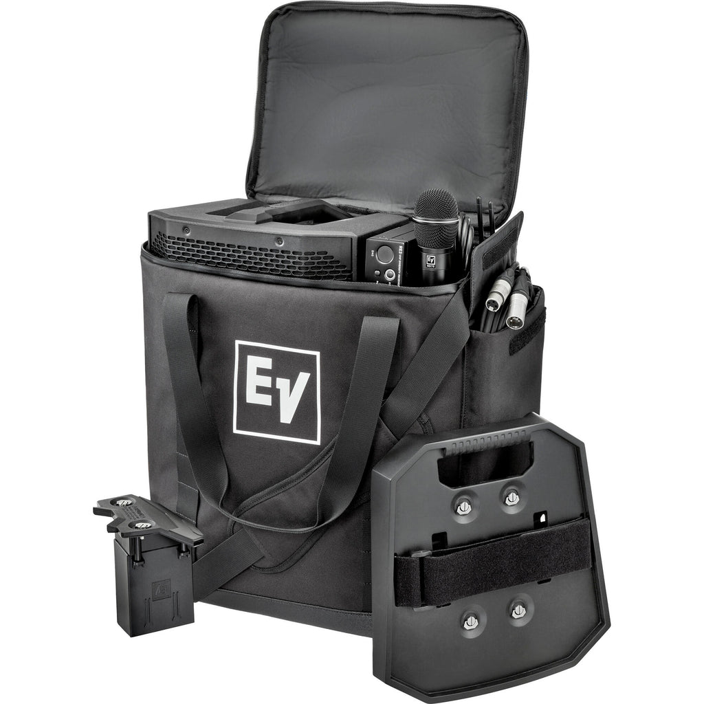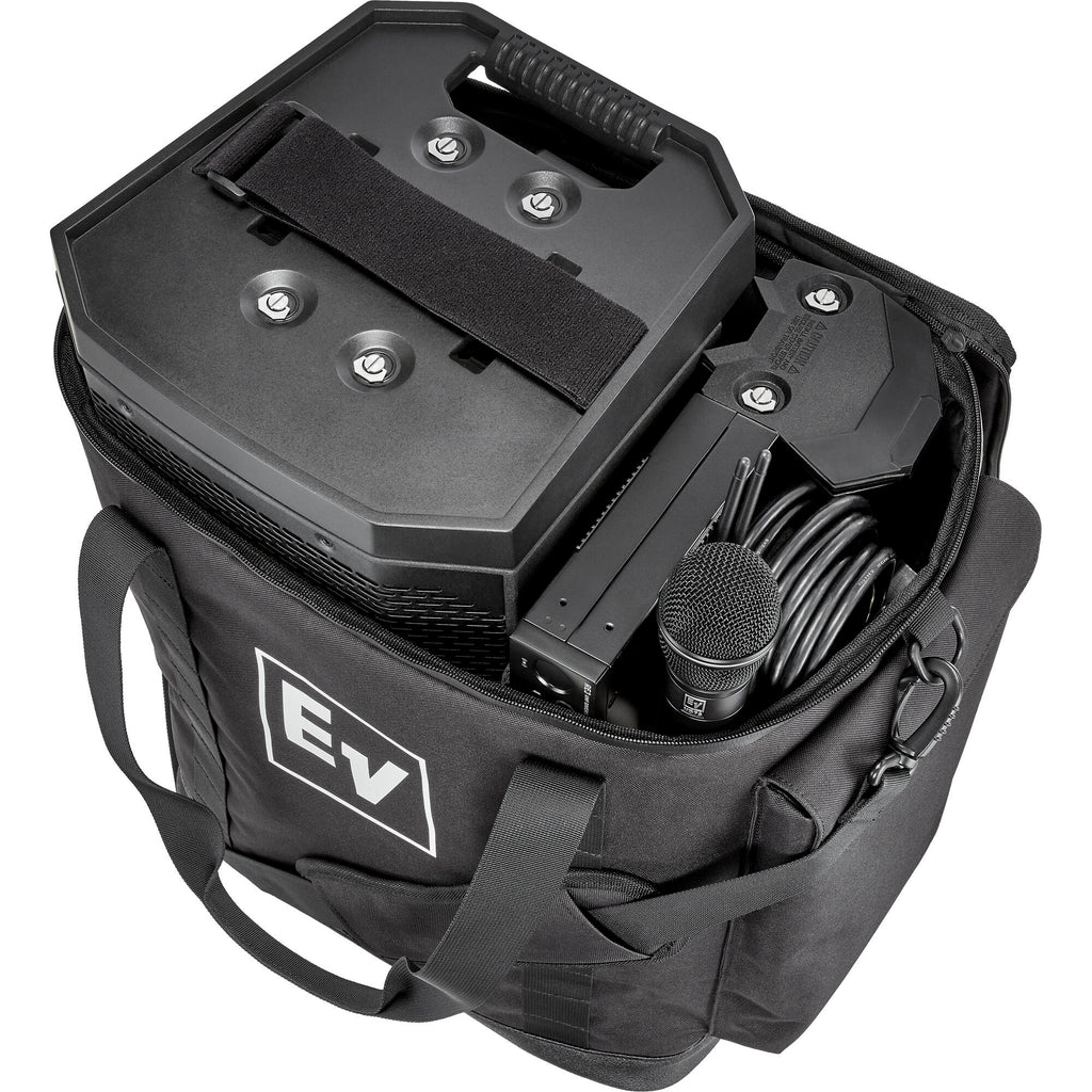 Protect your equipment from the rigors of on-the-road wear and tear with the Electro-Voice Tote for EVERSE 8, a padded gig bag that's designed to hold and carry your EVERSE 8 speaker with plenty of room for accessories. The bag's internal section provides a divider to keep things in place with room for the EVERSE 8 speaker as well as the accessory tray, wireless microphone receiver and microphone, while two outside pockets store accessories such as XLR cables, power cords, mobile devices, and charging cables. The bag features two handles and a removable shoulder strap.