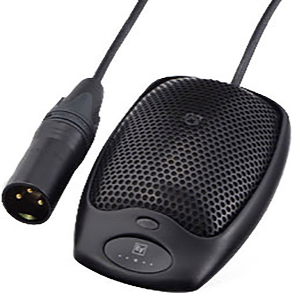 The PC Boundary mic is a low profile microphone that can be used with standard and automatic mic mixers. The PC Boundary mic is a member of the EV PolarChoice series of multi-pattern microphones. The multi-pattern versatility of the PolarChoice microphone makes it a true "problem solver". With one non-directional and three directional polar patterns available, PolarChoice microphones are ideal for virtually any installation. Of particular interest is the figure 8 pattern that allows miking people on opposite sides of a table with only one microphone, while providing a dramatic reduction of ambient room noise. The PC Boundary mic features a large soft-touch mute button. The mute button can be configured for push-on / pushoff, push-to-talk, or push-to-mute functions. Mute switch programming is easily accomplished without disassembling the microphone. The microphone can also be programmed to be either live or muted when power is initially applied (when in toggle mode). Additionally, a switch on the bottom of the mic, quickly converts the PC Boundary to automatic mixer mode. In this mode, audio is always on.