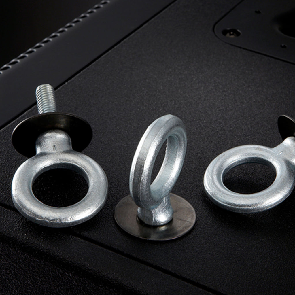 The TX1152 has a variety of features that make it equally suited for portable or fixed installation applications. The trapezoidal enclosure is constructed out of a combination of plywood and MDF, and coated with EVCoatTM for maximum strength while still remaining lightweight. The unique grille design is very strong, dent resistant, and features a rotatable logo. Four way handles allow for gripping the TX1152 in a variety of positions, a pole mount allows for placement on a subwoofer or a tripod. Six 3/8" threaded points allow a single TX1152 to be suspended in a various positions. The recessed input panel with dual NL4 connectors panel keeps the connectors hidden while allowing the TX1152 to be used with the TX1181 subwoofer for extended sub bass on a single amplifier channel, with no additional processing needed.